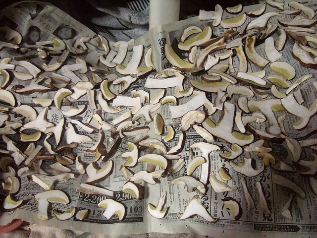 どうみても一度や二度パスタにしたくらいで消費しきれる量じゃないので、干しポルチーニにしてみることに。 適当に調べて適当に実行するMayuge方式。とりあえずスライスして新聞の上に並べてみました。幸いにもその日から数日間はけっこう晴れてたので、そのまま窓際に持って行って天日干し。 ていうか干してると部屋全体にダシっぽい臭いが充満するんですが。乾物屋かここは。